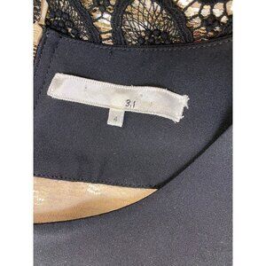 3.1 Phillip Lim sz 4 dress Black Gold Crochet Overlay Sequin Shift Mini retro