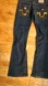 (31) True Religion Blue Jeans Gold Sequins Classic Flare Fancy Luxury Comfy