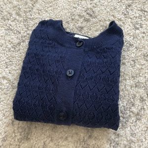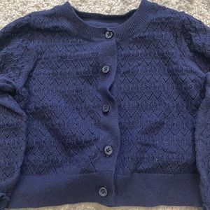 Reposhing this item I purchased from @guitarandstick. Loved it, but sizing was off. It’s small! It’s in excellent condition and very adorable, but too small for 3T. I’m listing as 2T and calling it a “mini cardigan” as it’s slightly cropped. So cute with a dress! Navy blue.