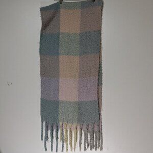 *3/$10* Pastel Checkered Chunky Scarf with Tassles Pink Baby Blue