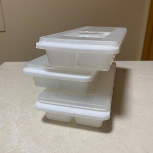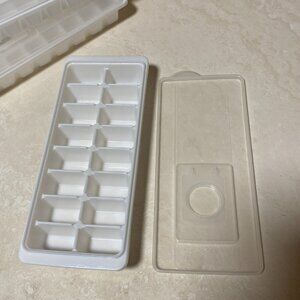 You will get 3 plastic ice cube trays, each one comes with a lid.