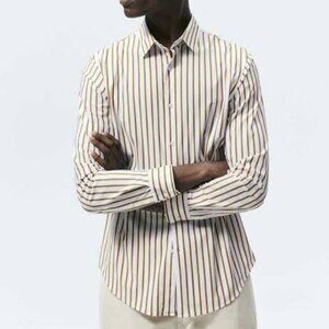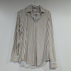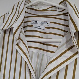 *3/$10* Zara Silky Striped Button Down Long Sleeve Shirt White Gold Size Medium