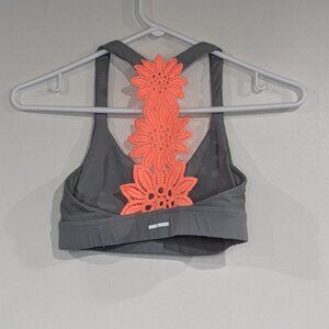 *3/$10* aerie Lace Back Sports Bra Grey Neon Coral Size Small