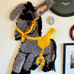 Keywords: vintage woven donkey, 1970s wall hanging, mid century textile art, boho folk decor, retro woven wall art, vintage fiber art, handmade donkey weaving, rustic home decor, 1970s vintage textile, collectible woven art, donkey motif wall hanging, retro bohemian decor, authentic vintage weaving
