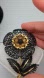 This brooch has two articulated layers: the back flower layer rotates, adding depth and movement to the design.