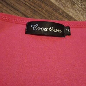 bright pink 3/4 sleeve scoop neck top with with pointed hem