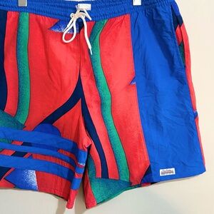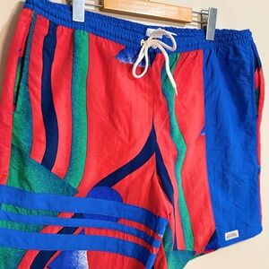 3/$10⚡️Vintage Pierre Cardin Vibrant Red Blue Green Abstract Swim Trunks