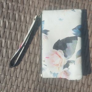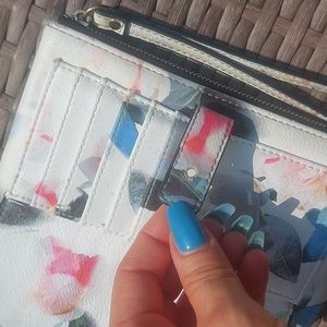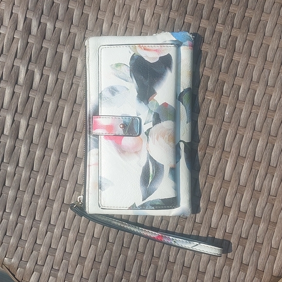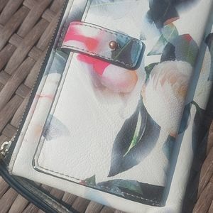 Indigo floral print vegan leather wallet with change purse and card section flap