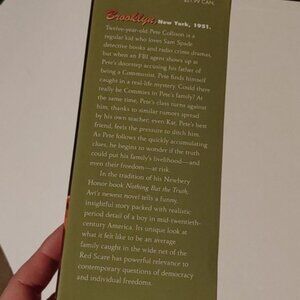 Synopsis: The Collison's are an ordinary family, and Pete's a normal kid... until the FBI show up at his door and accuse him and his family of being Communists. Set in 1951, during the Red Scare - when the cold war was really beginning to solidify - this suspenseful, middle grade novel explores the impact of the War on an average American family. As Pete digs into his family history, using the sleuthing skills he's learned from Sam Spade and radio dramas, his world is rocked. Is his dad really a Communist, and his grandfather too? And what does that make Pete? Is that why his friends won't talk to him anymore?