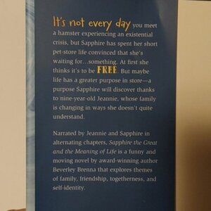 It's not every day you encounter a hamster experiencing an existential crisis, but Sapphire has spent her short pet-store life convinced that she's waiting for...something. At first she thinks it's to be FREE, but it may be possible that life has a greater purpose in store--a purpose Sapphire will discover thanks to a nine-year-old girl whose family is changing in ways she doesn't quite understand. Jeannie's dad has moved out, her mom is always tired and snappish, and her older brother just wants to play video games in his room all day. Jeannie doesn't understand what’s going on, but she knows one thing: she really, REALLY wants a hamster. Her mom promised she could buy one with her Christmas money, but it's been WEEKS since the holidays and Jeannie's beginning to worry she'll never get her pet. But maybe if she does, her dad will come to visit. Maybe a hamster will make everything better.