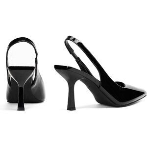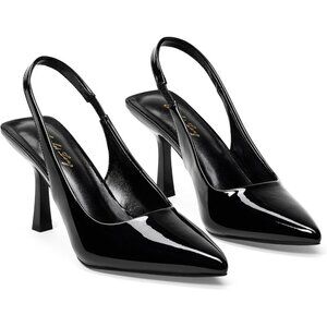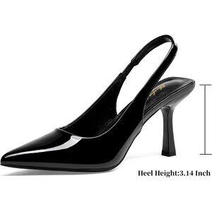 🆕3.14 Women Black Patent Polyurethane Trendy Slingback Stiletto Pumps Heels