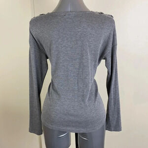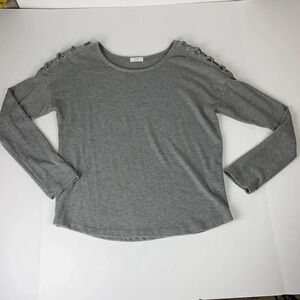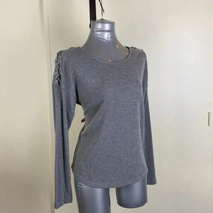 3/$15 Grey shoulder lace up long sleeve scoop neck casual basic sweater sz small