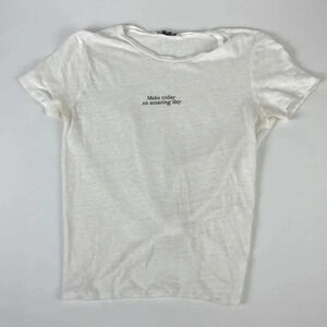 3/$15 Minimalist Casual Graphic light weight tie back white tee short sleeve XS