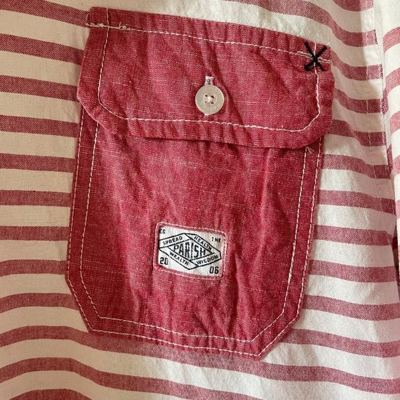 3/$15 Parish Men's 2XL Button Shirt Short Sleeve Striped Casual Hand Crafted 2XL