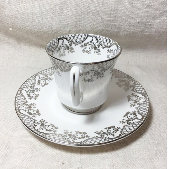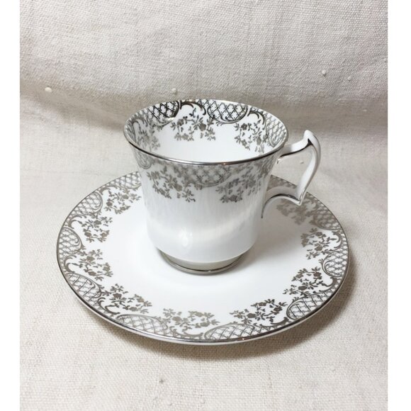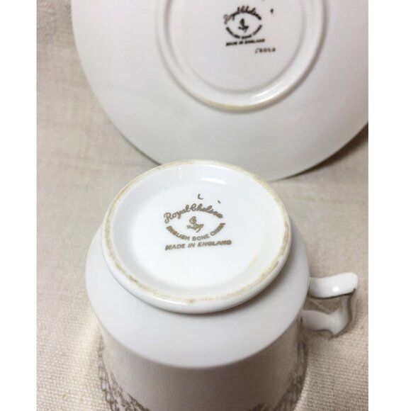 3/$15❤️ Teacup and Saucer Royal Chelsea Fine Bone China England Silver and white