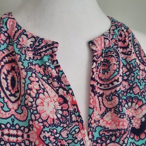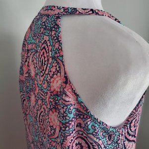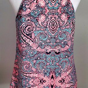 3/$15 Women's Halter Blouse Racer Back Pink & Teal Blue Paisley Beachy