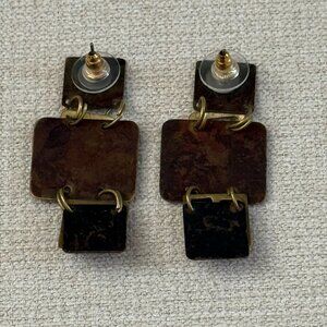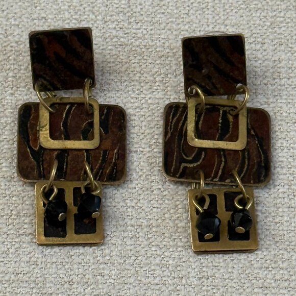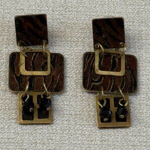 3/$17 Abstract Animal Print Metal Dangle Pierced Earrings Brown Gold