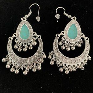 3/$17 Ethnic Inspired Chunky Silver Tone Faux Turquoise Dangle Pierced E…
