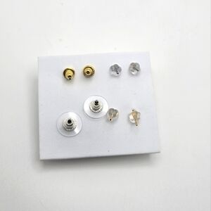 This lot contains 4 pairs of PIERCED Earrings Great to add to your collection, share or even resell! In good Pre owned condition - Will require a cleaning. I discarded all original earring backs and replaced with new ones. - Brand New Earring backs are metal and/or rubber New to Poshmark? Score an extra $15 Posh Credit towards your first purchase when you sign up with SIGN UP CODE @jamierosejewels Please Note: We try to recycle packaging materials wherever possible, reducing our "footprint". As well, some of our items come from estates, friends, relatives and other places. We do not always know the history of the vintage OR the newer items, packaging, etc. While we endeavor to make every effort to ensure absolute cleanliness, there is a possibility that scents from the past may remain, (although we do use ozone treatments occasionally, as well as scented packaging). These may include fragrances, pets, smoke, etc. Please be aware in case of any sensitivities. Thank you