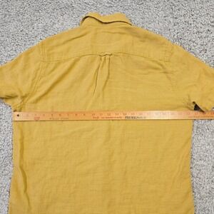32 Bar Blues Shirt Men Large Yellow Short Sleeve Cotton Button Front Resort