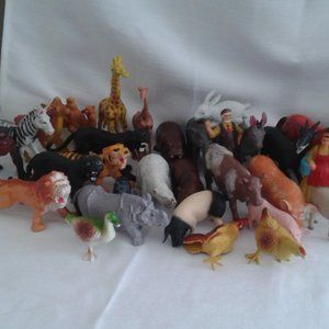 Lot of 32 Rubber/Plastic, Wild/Farm Animals