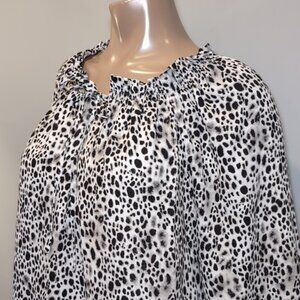 3/$20 A New Day Flowy Cheetah Print Blouse Smocked Keyhole Long Balloon Sleeve