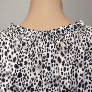 3/$20 A New Day Flowy Cheetah Print Blouse Smocked Keyhole Long Balloon Sleeve