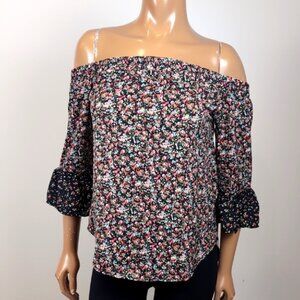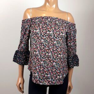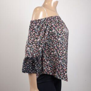 3/$20 Ardene Floral Off Shoulder Top Ruffle Flare Cropped Sleeve Size Small