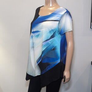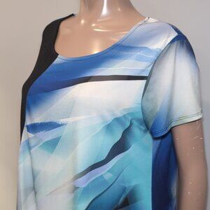 3/$20 B.L.E.U. Abstract Tunic Top Short Sleeve Asymmetric Hem Water Colours