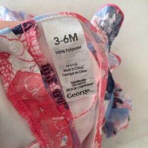 George baby girl dress, pink, navy & white, tiered with ruffles, floral print.