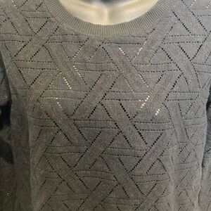 Banana Republic black 3/4 sleeve top, knit diagonal pattern, see through. Size medium petite. 66% cotton, 34% nylon. Next day shipping. Bundle up to save!