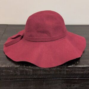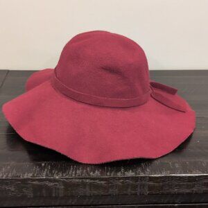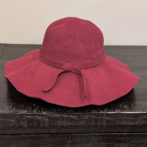 3/$20 Burgundy Felt Floppy Hat Womens One Size Ribbon Tie Accessory Wide Brim