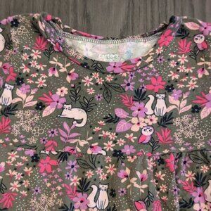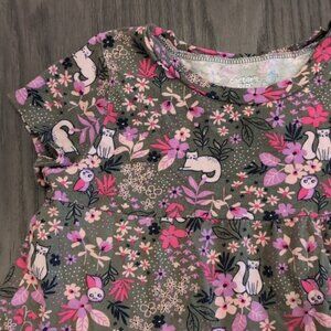 3/$20 CARTERS Garden Floral Top Short Sleeve Flare Hem Cat Owl Forest Swing