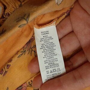 Adorable set with short sleeves, elasticized smocked neckline and ruffled pull on skirt. The pink floral print on orange is a versatile look for spring, summer, and early fall - think back to school outfit! Girls size medium, 7 to 8 years.