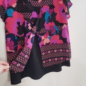 🦋3/$20 Dana Buchman Large Pink Purple Print Short Sleeve Layered Boxy Top