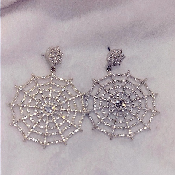 🩵3/$20🩵 Elegant Silver Spider Web Sparkly Rhinestone Earrings Halloween