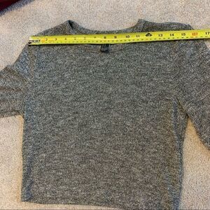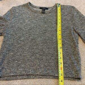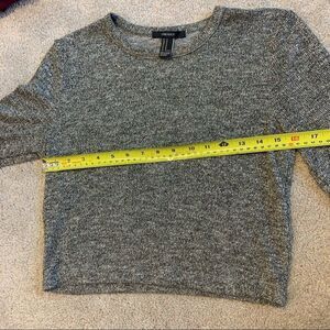 Forever 21 gold black long sleeve stretchy sweater. has gold threading throughout. Maybe even a little bit of silver.
