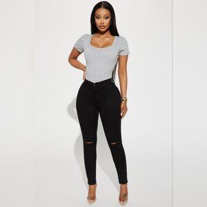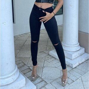 3/$20 Fashion Nova Ripped Knee Skinny Jeans High Waist Black Distressed Denim