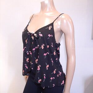 3/$20 GEORGE Flamingo Print Cami Tank Top Cut Out Tiered Ruffled Sleeveless