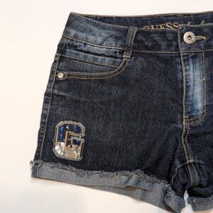 3/$20 Guess Denim Shorts Cuffed Raw Hem Sequin Monogram Logo Faded Jeans
