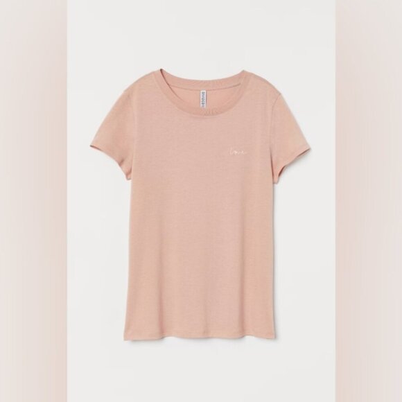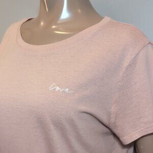 3/$20 H&M Divided Basic Tshirt Love Embroidered Powder Pink Short Sleeve Top
