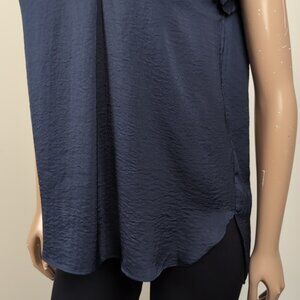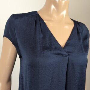 3/$20 H&M Navy Vneck Top Short Sleeve Satin Pleated Blouse