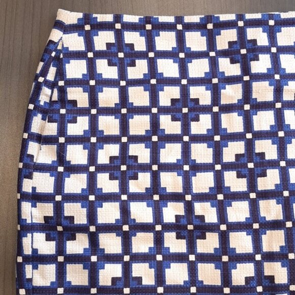 3/$20 JOE FRESH Woven Pencil Skirt Geometric Grid Print Tweed Blue White Size 8
