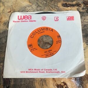 Vintage Columbia vinyl record featuring 'Half Moon' by Janis Joplin. Classic orange and black design.