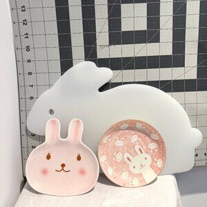 3/$20 Japanese Bunny Rabbit Bowls – 2 Cute Kawaii Plates + 1 Bunny Cutting Board