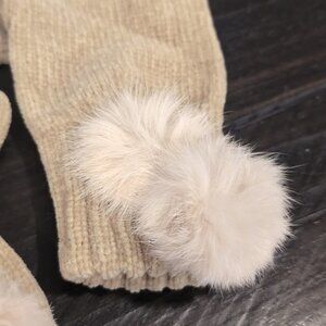 3/$20 LAURA Chenille Winter Gloves Faux Mink Fur Pom Poms Ribbed Acrylic Knit