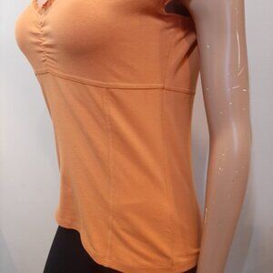 3/$20 LIZ & CO Cap Sleeve Tshirt Ruffled Vneck Shirred Empire Waist Top Pumpkin