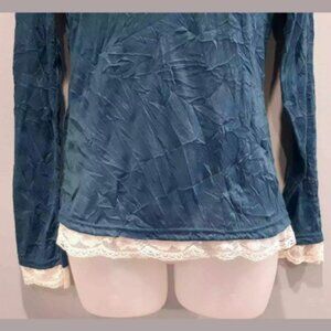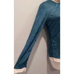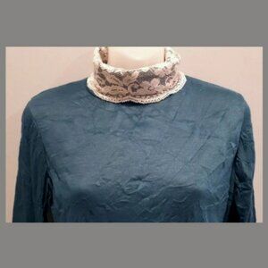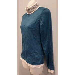 3/$20 Lace Trim Turtleneck Teal Top Long Sleeve Romantic Feminine Blouse