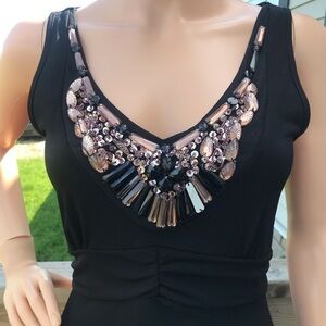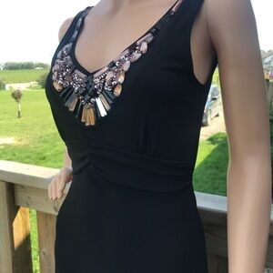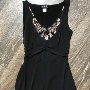 Gorgeous black dress with beaded details around the neck line. This dress ties up on the back and is below the knee area. Size small N.W.D New Women Design. There is a small white blemish in the dress that is super small and could probably come out. Same day or next day shipping. Bundle up to save!