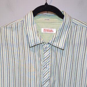 3/$20 Michael Brandon Striped Mens Shirt Button Down Convertible Roll Tab Casual